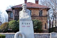 闻先生的影子,经常在我的心头,不论他生前还是死后。新中国成立以来,我四次去青岛,旧地重游,每次我一定去闻先生的故居重温旧梦。闻先生住过的这座小楼,孤立在学校的东北角,是新建的,闻先生从大学路“青大第一公寓”移居于此,现在被称为“一多楼”。去年暑期我到青岛,两次瞻仰了闻先生的故居,并在楼门口留影纪念。这座“一多楼”现在是海洋学院的实验室。与领导同志谈及,打算将来整修一下,作为闻先生的故居对外开放。