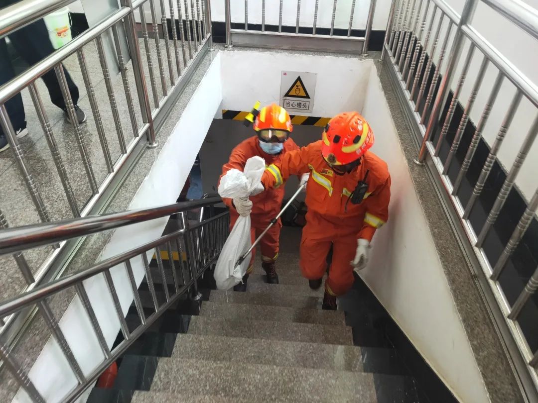 16时20分,消防员到达现场后,根据现场情况立即实施救援。经询问群众得知一条2米长花蛇在宿舍处被居民用拖把按在角落里。
