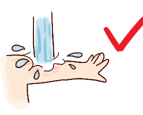 可用冷水、肥皂水、盐水等冲洗伤口