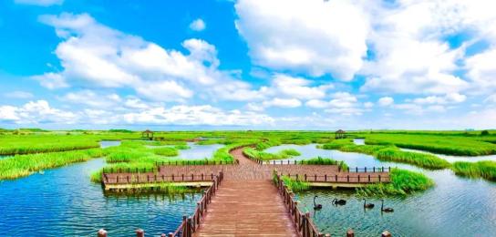 查干湖是全国十大淡水湖之一,也是吉林省最大的内陆湖泊。查干湖冬捕,是国家级非物质文化遗产,享有“冰湖腾鱼”的美誉。仲夏时节,查干湖水天一色、草木丰茂。极目远眺,湖面波光粼粼,湖畔花海盛放。你可以乘竹筏游湖,观苇赏荷;还可以到野鸭湾湿地公园,与珍稀鸟儿作伴;当然,千万别错过查干湖的鱼宴,炖、煮、焖、熘、煎,贼啦啦地香!