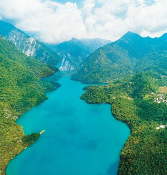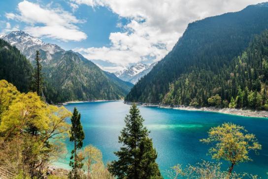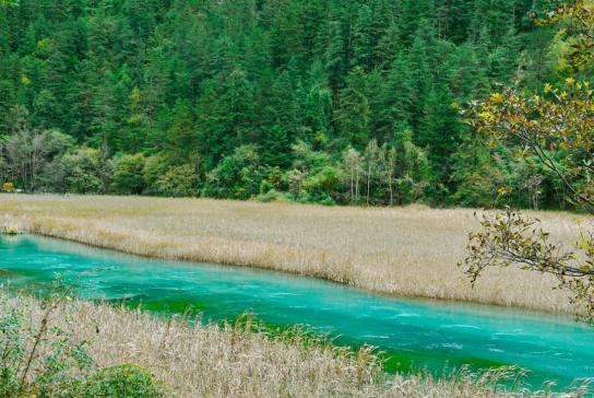 九寨沟位于四川省西北部阿坝藏族羌族自治州境内,蓝蓝的天空、明媚的阳光、清新的空气和点缀其间的古老村寨、栈桥、磨坊,组成了一幅内涵丰富、和谐统一的优美画卷,历来被当地人视为“神山圣水”。九寨沟的水清丽灵动,变换不同角度,眼前水的颜色立即发生转变,或蔚蓝、或靛蓝、或孔雀蓝……美得毋庸置疑,人们常言:“九寨归来不看水”。