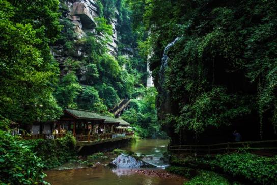 在碧峰峡风景区,峡谷穿行,清凉舒适,凭眺远处,群峰叠翠,驻足脚下,青草绿油,繁花相间,让人舒服惬意、心旷神怡。地址:四川省雅安市雨城区碧峰镇