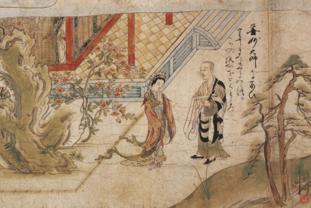 不同于《宋高僧传》中高冷沉默的义湘,日本画家想象中的义湘更加温柔慈悲。他不仅好言宽慰被拒绝的少女,请求她原谅自己,还表明自己一心向佛的决心。这样的话会打动善妙,也就不足为奇了。