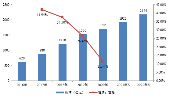 艾媒咨询数据显示,2016~2019年,我国智能家居市场规模由620亿元增至1530亿元,年均复合增长率高达35.1%,2020年即便是受到疫情冲击,依然实现了11.4%的同比增幅,预计2022年将有望达到2200亿元。从市场格局上看,不仅传统家电龙头在发力智能家居,以BAT为代表的互联网巨头,以华为、小米、联想为代表的科技巨头,也都在纷纷抢滩,火热程度可见一斑。