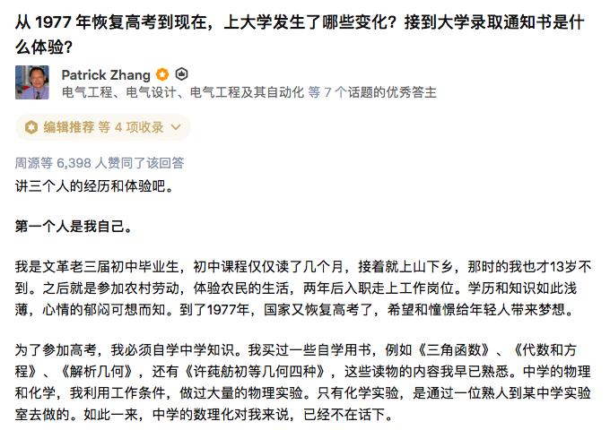 电气领域答主@Patrick Zhang已经年近七旬,他是世界五百强电气企业ABB的工程师,在知乎非常活跃,经常在去公司的班车上写回答。除了电气工程领域的专业问题,他还回答了很多学科、生活方面的问题。