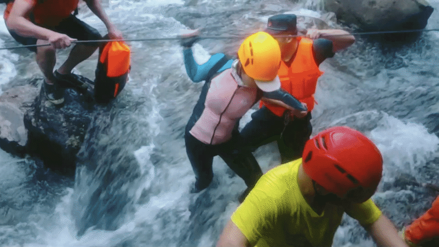 当消防员跨过第三条河后,成功找到了河流对面被困的24名驴友。驴友看到消防员时,情绪非常激动,大声喊道:“我们有救了,我们有希望了!” 消防员立即固定好绳索,带领他们平安穿过河流。19时40分,最后一个被困点被找到,被困此处的66人都被成功营救,所有人都平安无事。