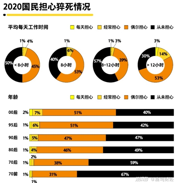 据2020年国民担心猝死数据显示,80后和90后的担忧数值逼近一半,90后和95后均超出50%,生存重压下,年轻人的心理焦虑空前高涨。