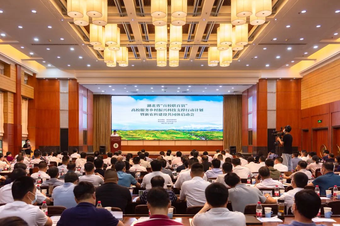 ▲启动会会场(彭雨格 摄)7月16日上午,湖北省“百校联百县”高校服务乡村振兴科技支撑行动计划暨新农科建设共同体启动会在华中农业大学举行。湖北省人民政府副省长肖菊华,湖北省人民政府副秘书长丁辉,湖北省教育厅党组书记、厅长陶宏,湖北省科技厅副厅长吴骏,湖北省财政厅二级巡视员高建华,湖北省农业农村厅二级巡视员欧阳书文,湖北省乡村振兴局副局长杨遥,长江大学校长冯征,中国农科院油料所副所长张毅,湖北文理学院副书记、副校长张樊,建始县委书记、县长张渊平和华中农业大学党委书记高翅,党委副书记、副校长姚江林,党委常委、学校办公室主任、党委宣传部部长张金洲等出席启动会。会议由省教育厅副厅长徐艳国主持。