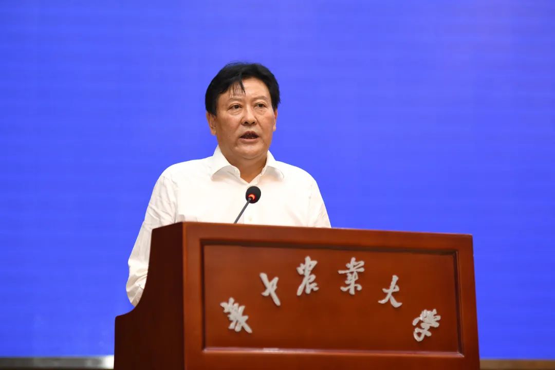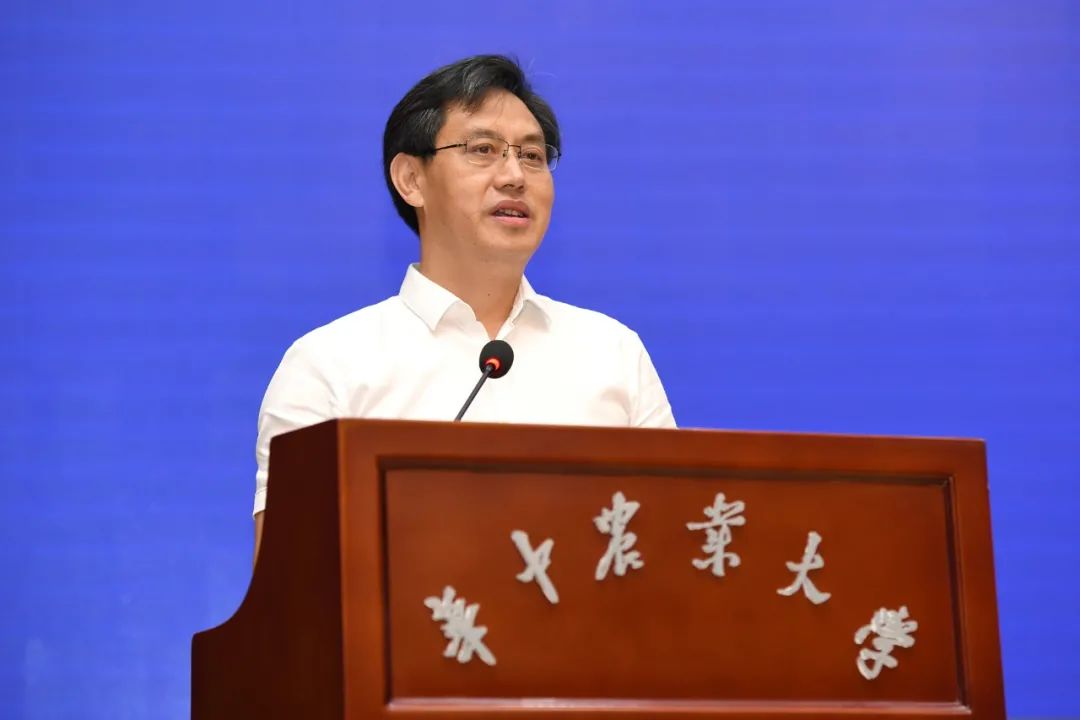 ▲华中农业大学党委书记高翅致辞(刘涛 摄)高翅首先致辞。他表示,在“三农”工作重心发生历史性转移的重要时刻,省教育厅启动“百校联百县”行动,成立新农科建设共同体,具有非常强的现实性、针对性和实践性、指导性。华中农业大学因农而生、因农而兴、因农而强、因农而荣,一代代华农人捧着一颗真心、带着一片真情、坚守一片真诚,弘扬以“勤读力耕、立己达人”为核心的华农精神,为推进农业全面升级、农村全面进步、农民全面发展奉献着智慧和力量。高翅说,从上世纪80年代“八七扶贫攻坚计划”“太行山道路”,到90年代组建宣恩、红安扶贫开发团,助力湖北农业扶贫开发,再到党的十八大以来,华中农业大学以优质教育资源大力服务精准扶贫,特别是按照“产业扶贫促进乡村经济发展、教育扶贫夯实乡村振兴根基、文化扶贫提升乡村品牌价值”的思路,定点扶贫建始县,助力建始县脱贫摘帽,探索和实践“科技+”精准扶贫、脱贫体系的华农方案。去年,学校启动了“乡村振兴荆楚行”,做到省域全覆盖、学科全覆盖、体系全覆盖、链条全覆盖,开展了广泛而深入的调研、资政、科技服务、学生社会实践等活动。今年,华中农业大学“乡村振兴荆楚行”立足于乡村率先全面振兴示范,在全省17个地市州选定了17个乡村振兴示范点,开展系统性、整体性的探索和实践,通过在重点领域和关键环节上的先行先试、率先突破,形成不同县域、不同发展类型、可复制、可推广、可借鉴的示范标杆,以点带面,推动荆楚大地全面乡村振兴。截至目前,华中农业大学4位院士、600多名教师、9000多名学生同向同行,开展了200多场科技服务、理论宣讲、主题调研、人才培训等活动,在荆楚大地唱响了“宏农学、扬国光、日新永无疆”的新时代奉献和奋斗之歌。高翅表示,“百校联百县”和新农村建设共同体的成立,必将凝聚起湖北高校优质科教资源的磅礴力量,为湖北加快“建成支点、走在前列、谱写新篇”,率先在中部地区实现绿色崛起、建成绿色发展的美丽中部作出新的更大贡献。