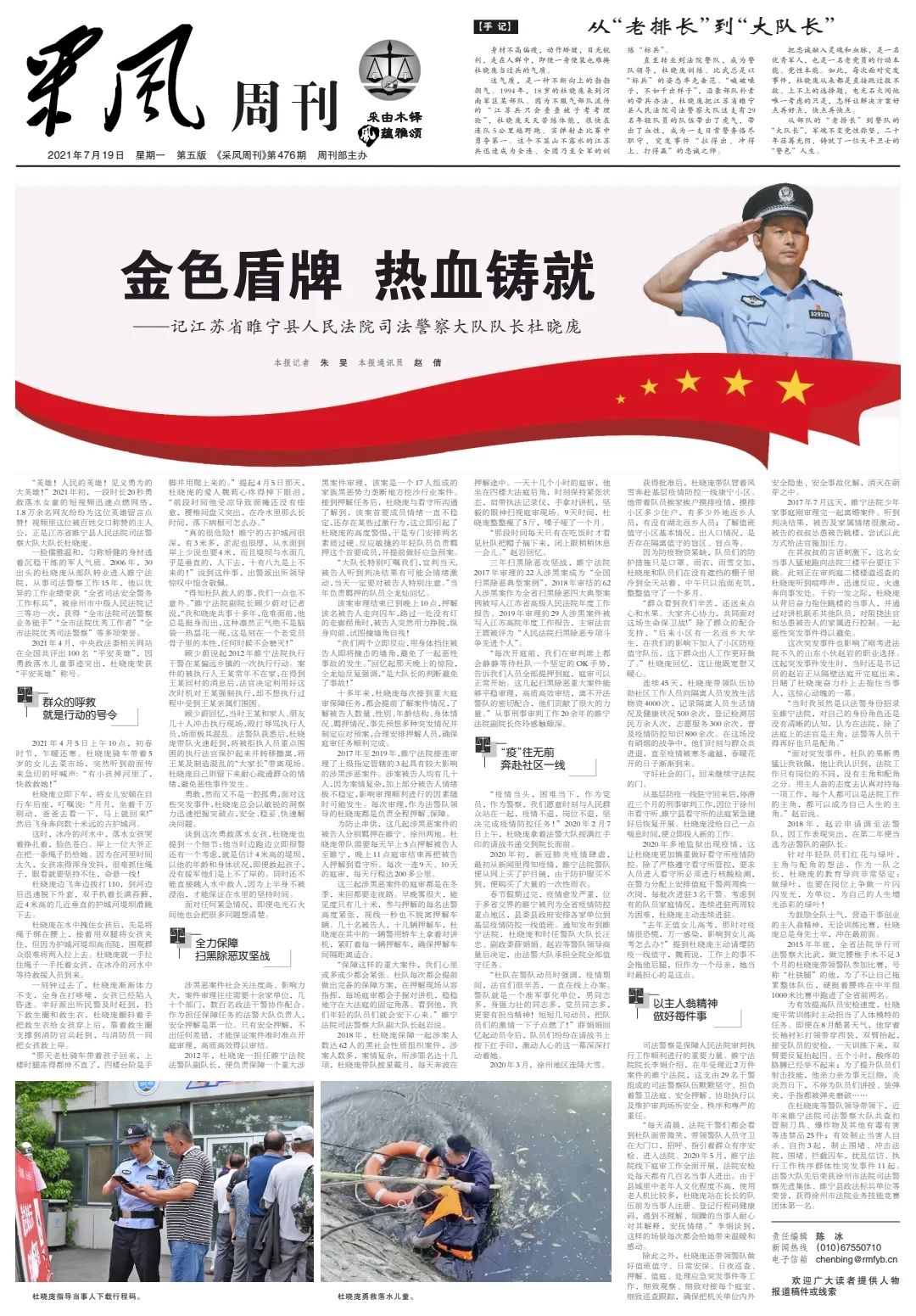 7月19日,《人民法院报》整版刊发睢宁法院杜晓庞大队长先进事迹。