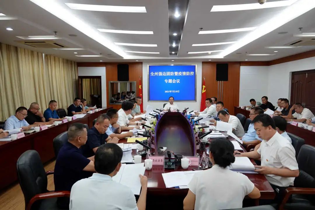 7月19日,州委书记郑艺主持召开全州强边固防暨疫情防控专题会议,专题研究贯彻全省边境疫情防控工作视频会议精神的具体措施,审议建立健全“五级段长制”、抓党建促强边固防工作等相关文件。