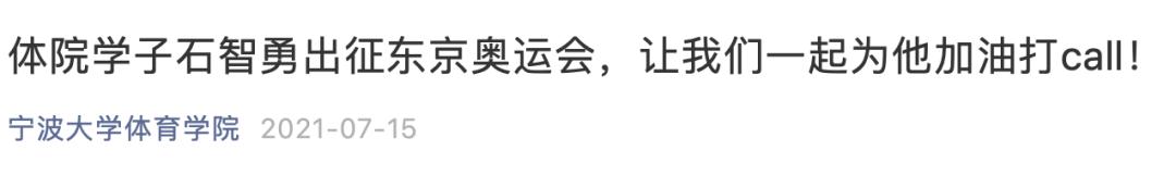 宁波大学体育学院2019级研究生石智勇入选大名单,他将代表中国参加举重男子73公斤级的比赛,他也是冠军的热门人选。