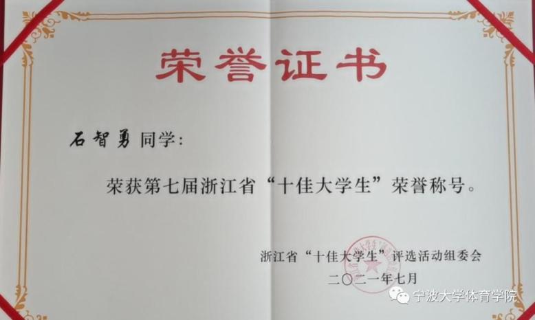 凭借着在研究生期间出色的表现,在不久前结束的浙江省十佳大学生评选活动中,石智勇荣获第七届浙江省“十佳大学生”荣誉称号。