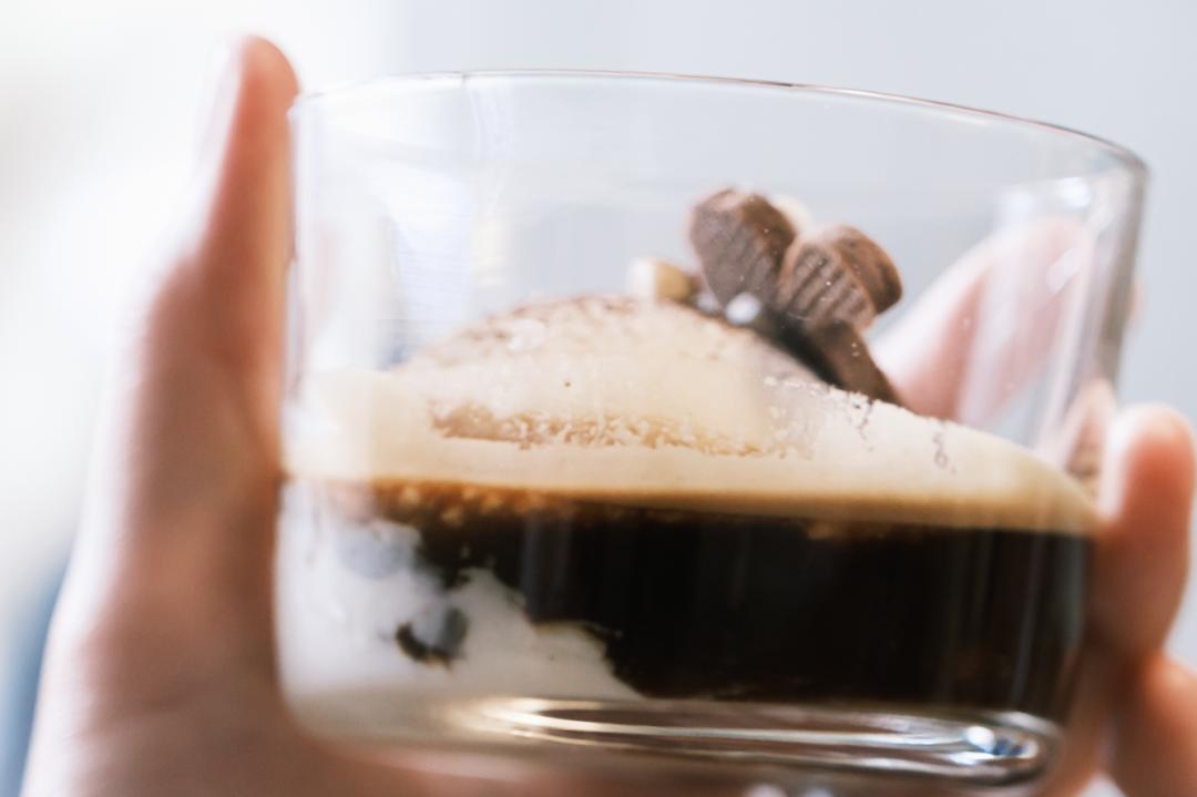 透过玻璃杯是阿芙佳朵特有的诱人横截面,别看小小一杯,浓郁绵密的口感足以供盛夏过个冰凉嘴瘾。/ info