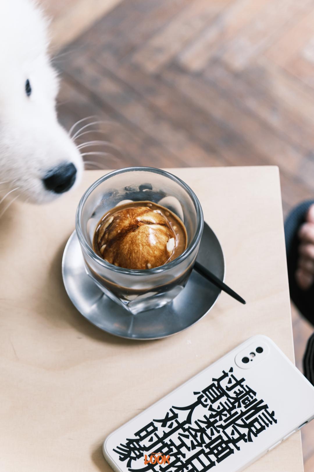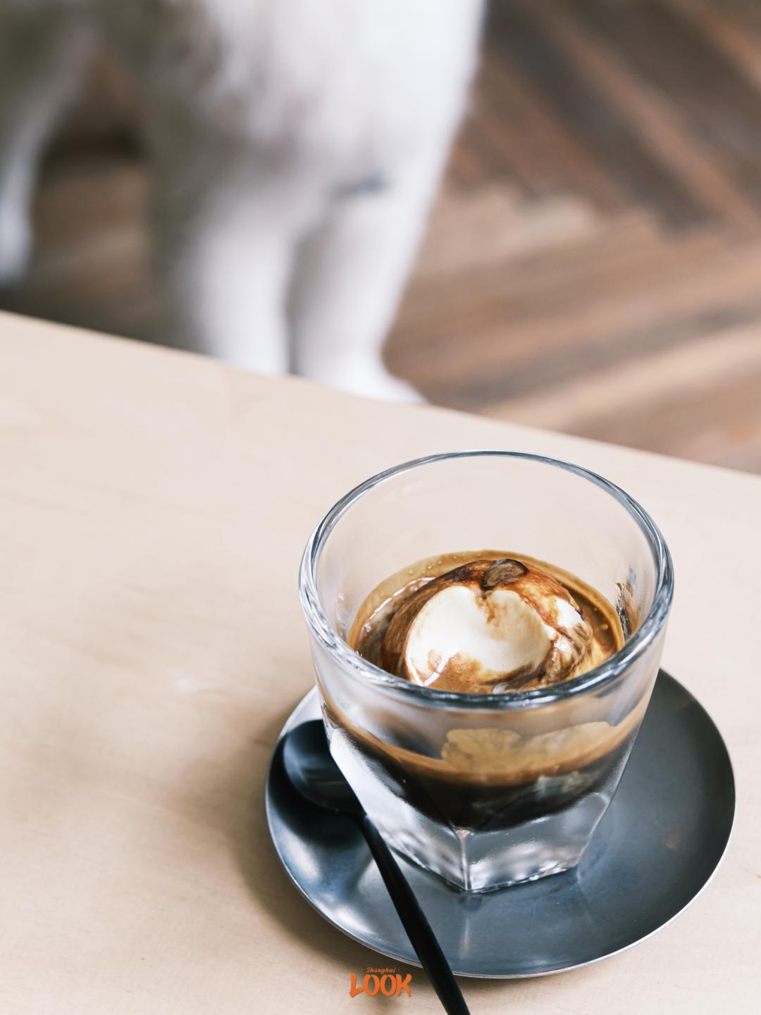 阿芙佳朵 (Affogato) 在意大利语意为「淹没」,是浓缩咖啡与冰淇淋的绝妙搭配,在这家店,则是小羊冰淇淋雪球,淹没在了香醇的浓缩咖啡中。