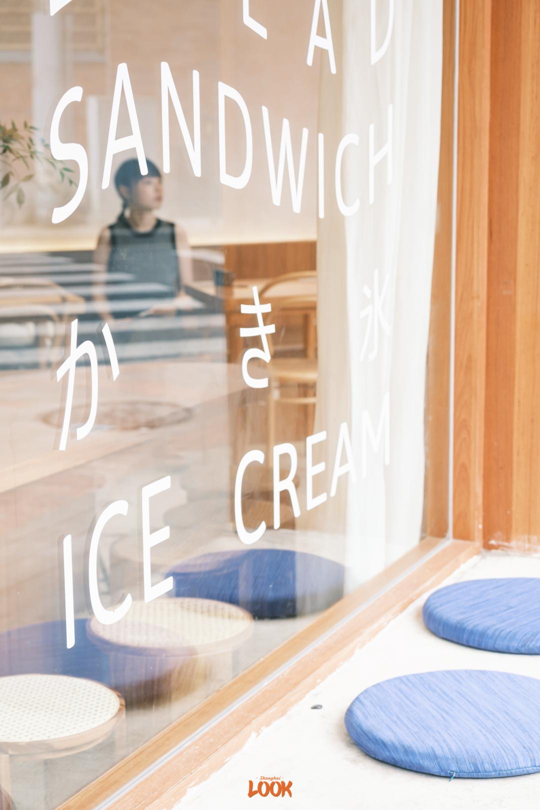 EÁU 坐落于永康路街口,是典型的日式风格小店,飘窗外天蓝色的小坐垫呼应着夏天,玻璃橱窗上写着かき氷(日语刨冰),显然是一家可以吃到日式雪冰的清凉小店了。