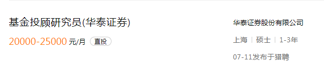 首批试点机构之一的华泰证券,发布基金投顾研究员岗位,给出20K-25K的月薪待遇,主要职责包括: