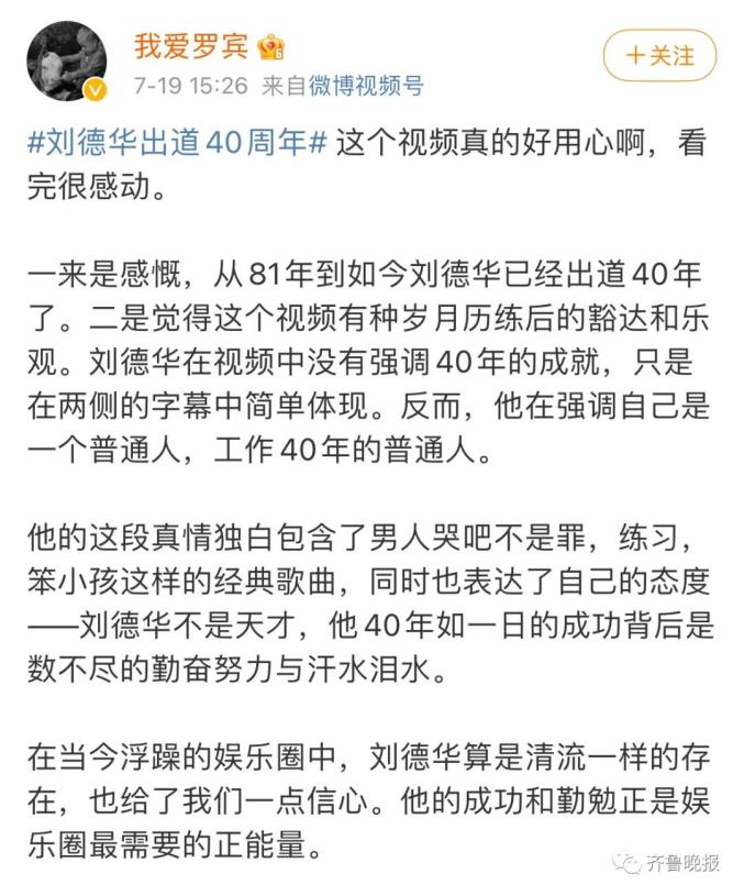 原标题:《刘德华的一段视频刷屏,不愧红了40年》