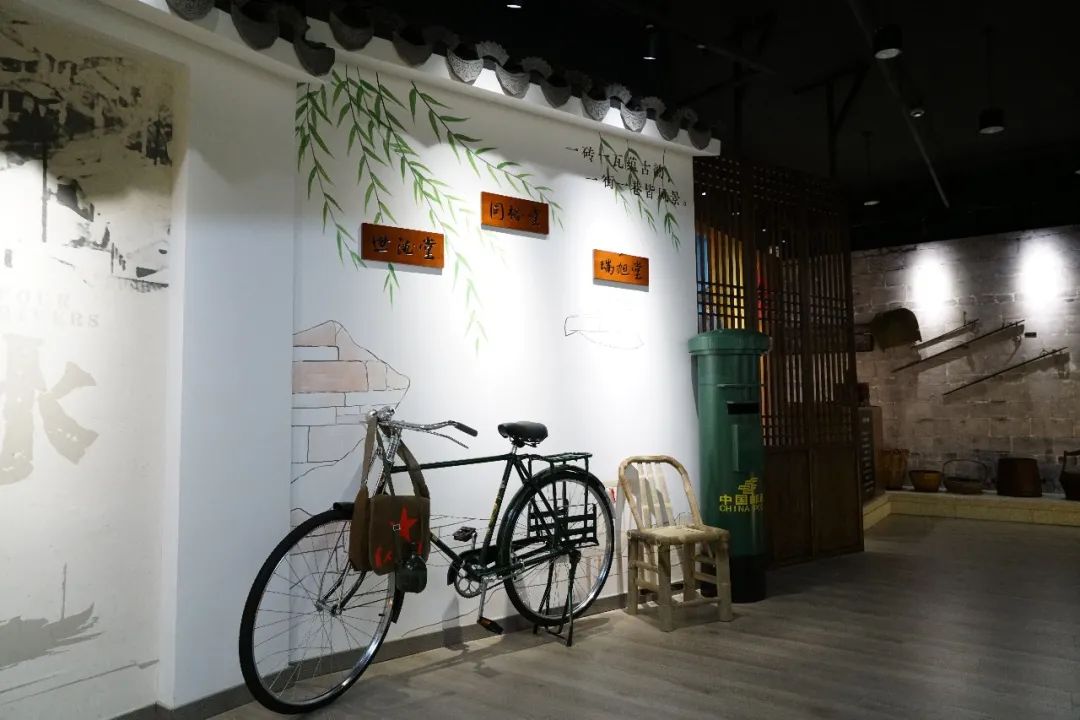 庄行古镇会客厅共有三层,共1200多个平方,大楼始建造于80年代初期,原来是庄行供销社大楼,所以在打造展厅的同时,保留了一些富有特色的建筑元素和具有年代气息物件。