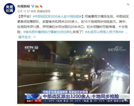 奔赴郑州抢险救灾