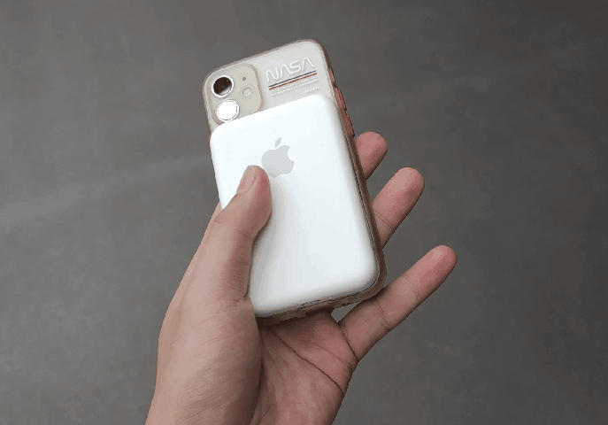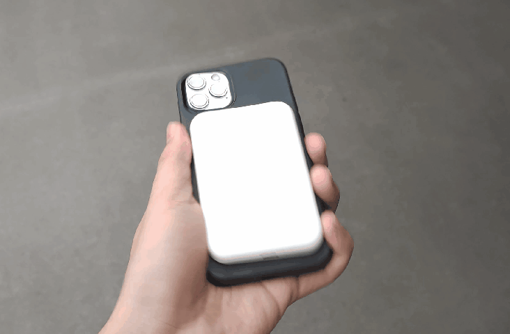 如果你的手机壳比较厚,此时 MagSafe 外接电池虽然依然可以对 iPhone 进行无线充电,但是吸附力会减弱很多,电池很容易就会从手机上掉下来。。。