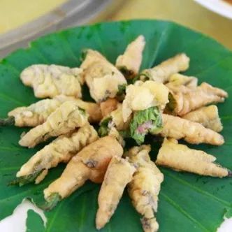 乍一看,像极了一只只方形饺子。夹起一只放于唇齿之间,一股清香甜嫩的味道流淌出来,外酥内香,十分可口。