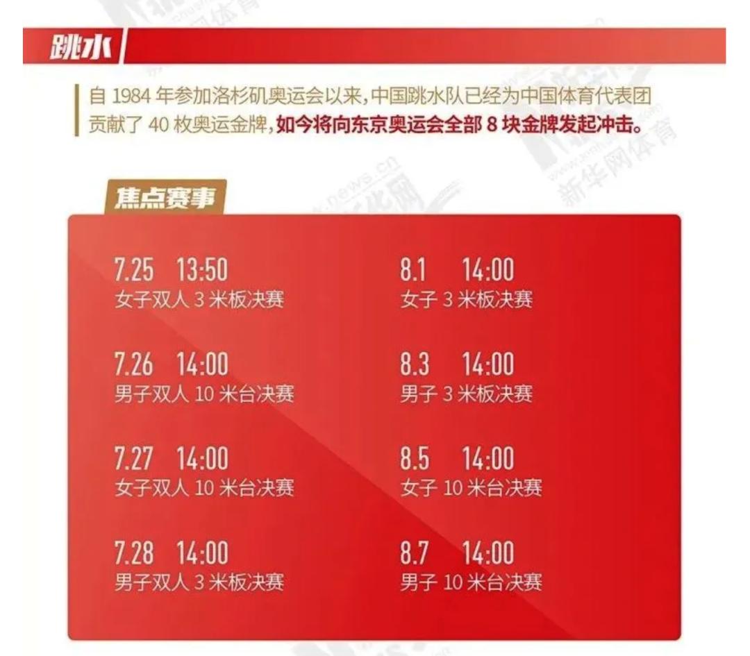 咱们中国队的传统强项也将引来两个焦点赛事:女乒团体决赛和女子单人10米跳台决赛。