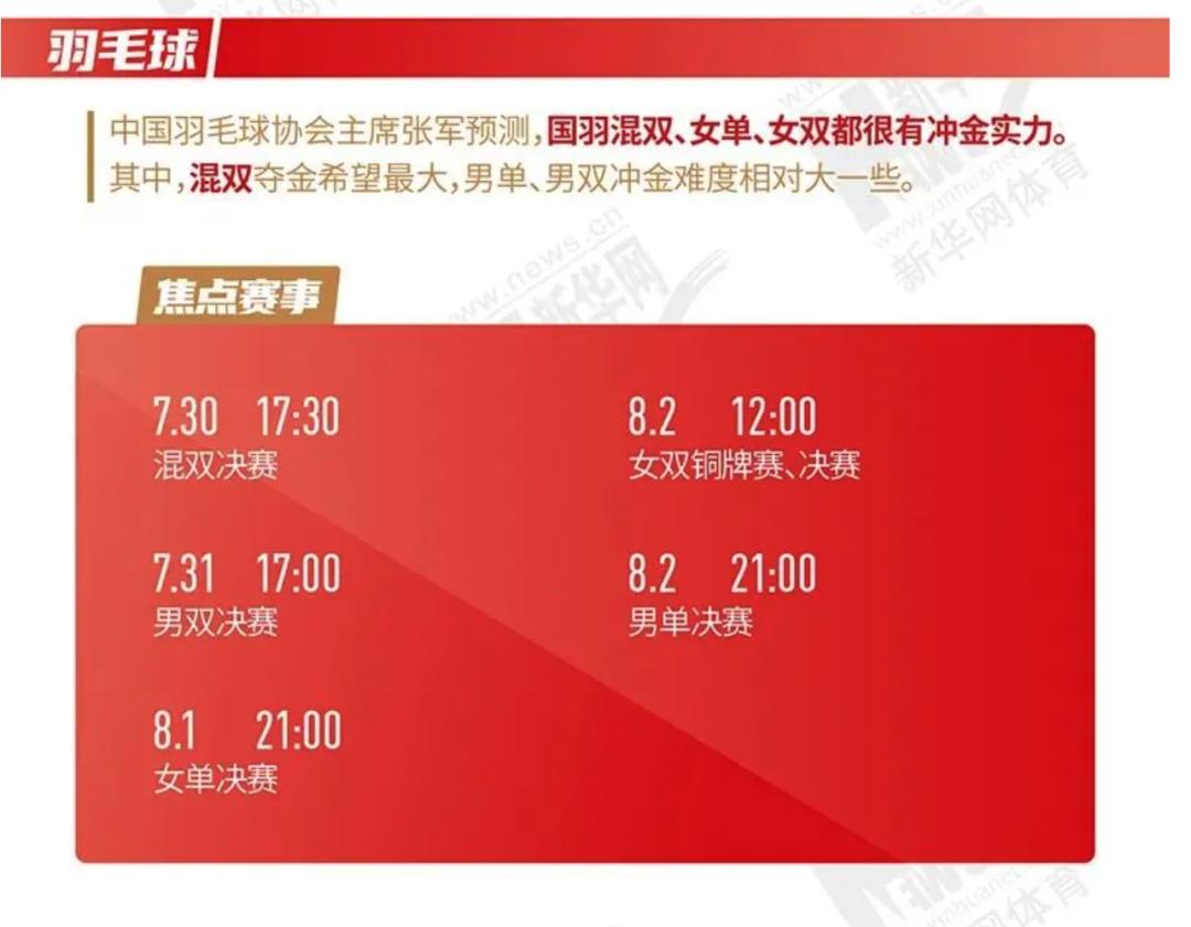 2、热门项目,比如游泳、羽毛球的具体日程安排是怎样?尤其,咱们中国健儿的热门夺金项目比赛时间 ...