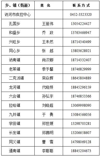 附件3:乡、镇(街道)及讷河市疾控中心联系方式公布如下: