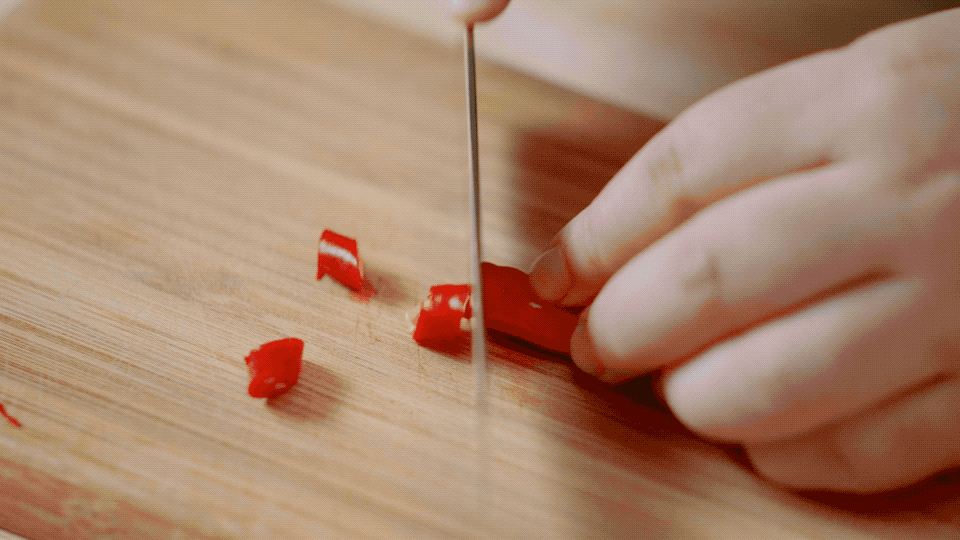 小米椒切圈备用,再准备蒜蓉和香菜。