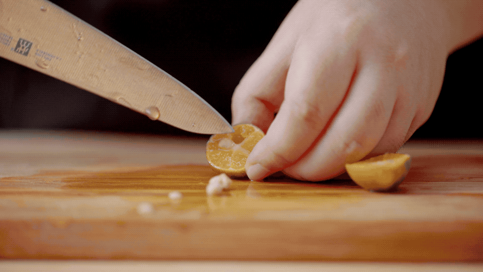 调制一个万能的泰式青柠汁,小青柠切半,去籽,挤汁。