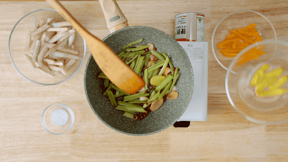 泡椒和泡椒水是灵魂,能增加酸辣风味;最后快速加入藕带和彩椒丝,想要口感更丰富的,出锅前加一点点糖和小葱。