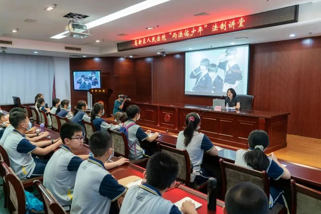 近日,潍坊文华学校30余名学生走进潍坊市高新区法院开展暑期实践,“零距离”感受法院工作氛围,生动直观地接受法治教育。链接:【我为群众办实事】潍坊文华学校走进高新法院开展暑期实践活动