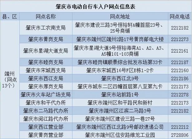 肇庆在全市指定的邮政网点开设124个电动自行车登记服务点。
