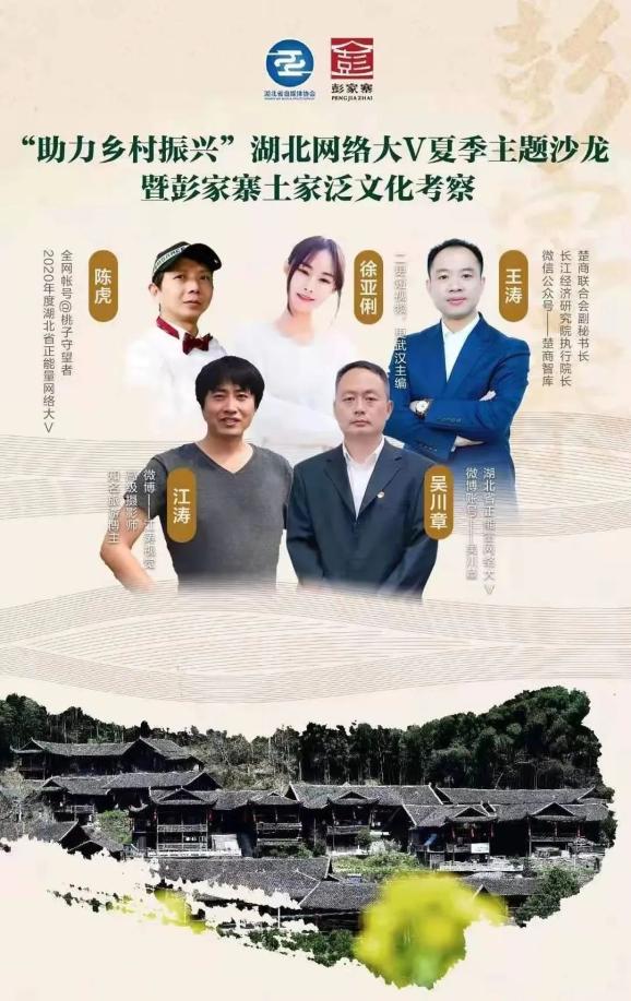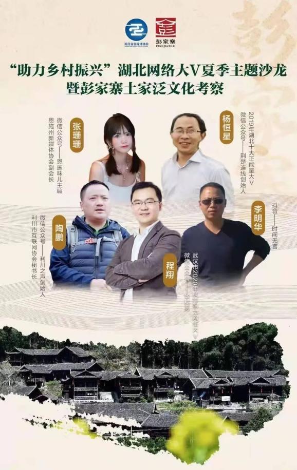 由宣恩县人民政府、湖北省自媒体协会、华中师范大学自媒体研究中心主办和宣恩县文化和旅游局、湖北彭家寨旅游发展有限公司承办的“助力乡村振兴”湖北网络大V夏季主题沙龙暨彭家寨土家泛文化考察活动在宣恩县举行。