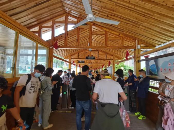 景区为游客提供安心、放心、舒心的游览环境,为避免游客量过于密集,景区在做好服务工作的同时,防疫工作不松懈。游客进入景区出示“健康码”,佩戴口罩,测量体温,大家都自觉保持间距1.5米以上。抓细抓实各项防疫措施。确保游客安全有序的游玩。