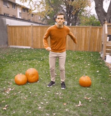 比如说上面那个活人大变香蕉,其实是由两段视频合成的,第一段是他往前倾倒。