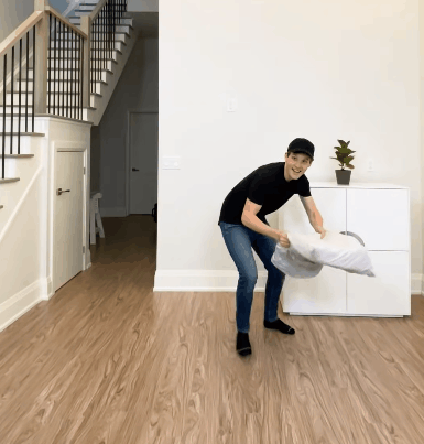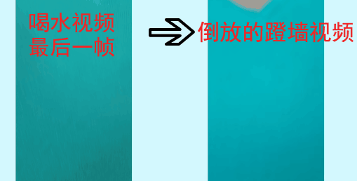 所以汽车侠只需要在蹬墙视频的开头遮挡住整个屏幕,接着利用这两个非常相似的帧,把前后两段视频无缝衔接在一起了。