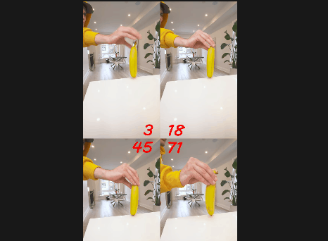 小哥要做的,就是在身体接近桌面时,找到自己和香蕉非常相似的那一帧,把前倾视频换成香蕉视频。