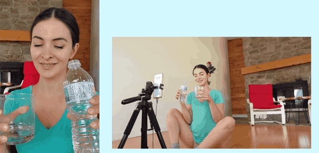 所以在 “ 倒水 + 开车 ” 的视频中,汽车侠要做的就是把倒水视频和倒放的蹬墙视频合到一起去。