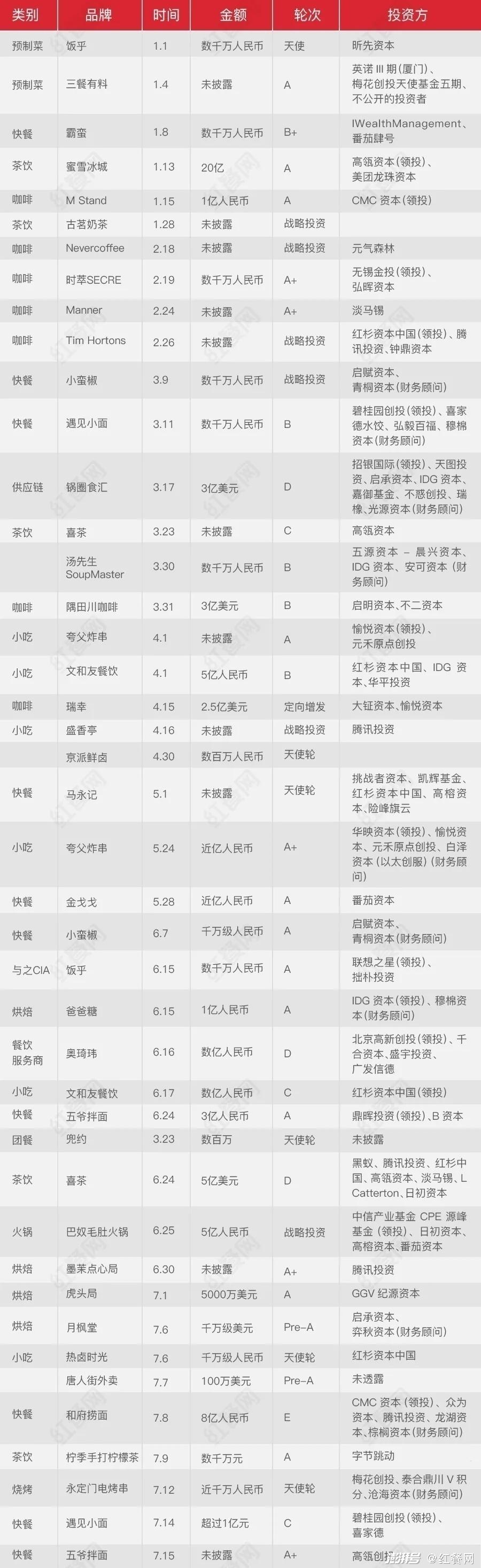 据红餐网不完全统计,今年上半年,仅餐饮板块(不包括食品、供应链、生鲜等后端产业)的投融资事件就有50余起,加上相关产业的话,这个数字可能要达到60-70起。