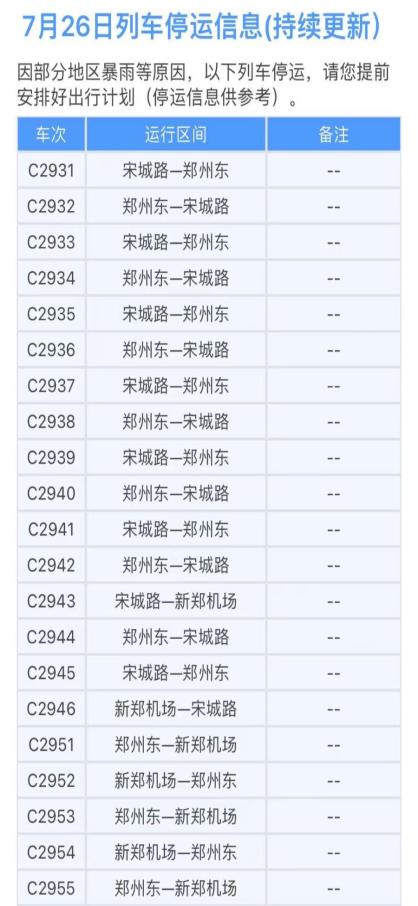 图:中央气象台受台风“烟花”影响,7月25日下午至上海方向列车陆续停运,7月26日列车停运信息持续更新中。