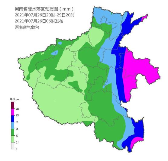 “七下八上”,河南主汛期降雨频繁。未来一段时间,河南依然多雨,局部依然会出现极端强降雨。河南省气象台预计26到29日,信阳、驻马店、周口、商丘、开封、濮阳、新乡、鹤壁、安阳有大到暴雨,局部大暴雨;26到28日京广线以东地区风力加大,东北风5到6级,阵风8到10级。大家要及时关注最新的预警预报信息,提前做好防御准备。