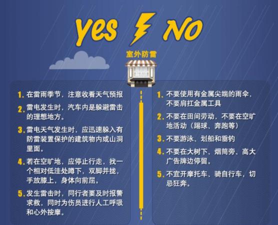 外出人群↓ ↓ ↓1.遇到突然的雷雨,可以蹲下,降低自己的高度,同时将双脚并拢,以减少跨步电压带来的危害。