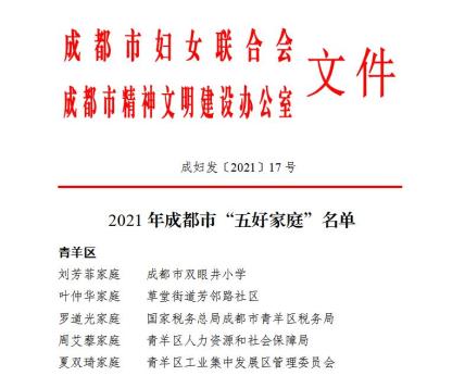 原标题:《祝贺!五位青羊姐妹的家风故事,上榜成都“五好家庭”》