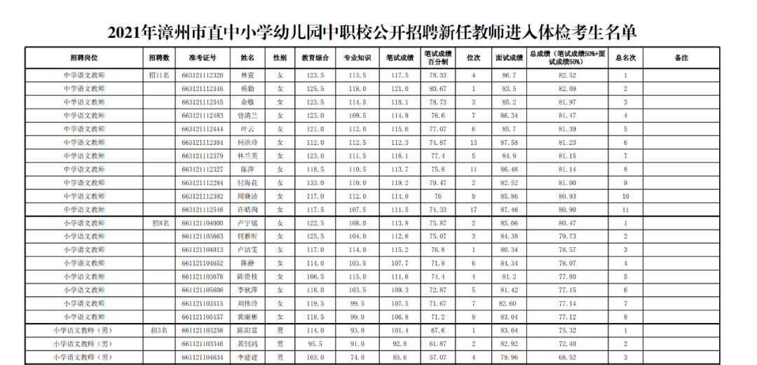 附件:2021年漳州市属中小学幼儿园中职学校公开考试招聘新任教师进入体检人员名单。(点击图片可放大)