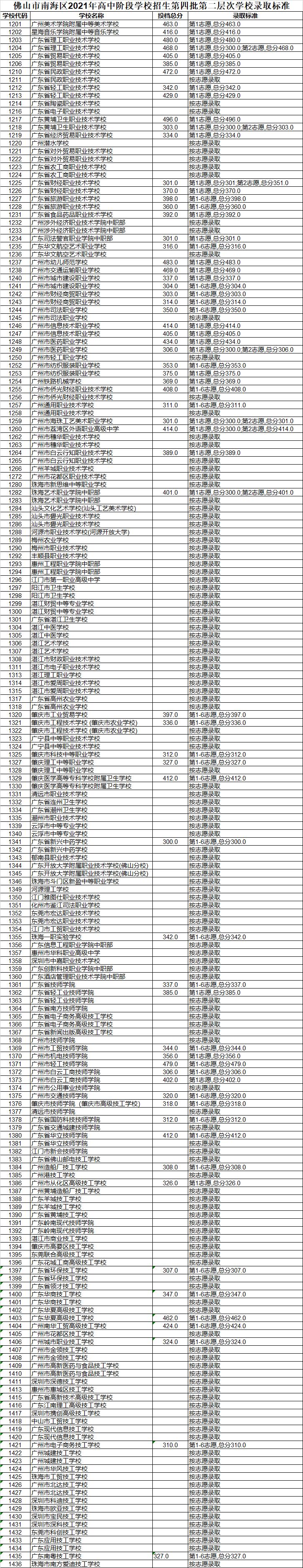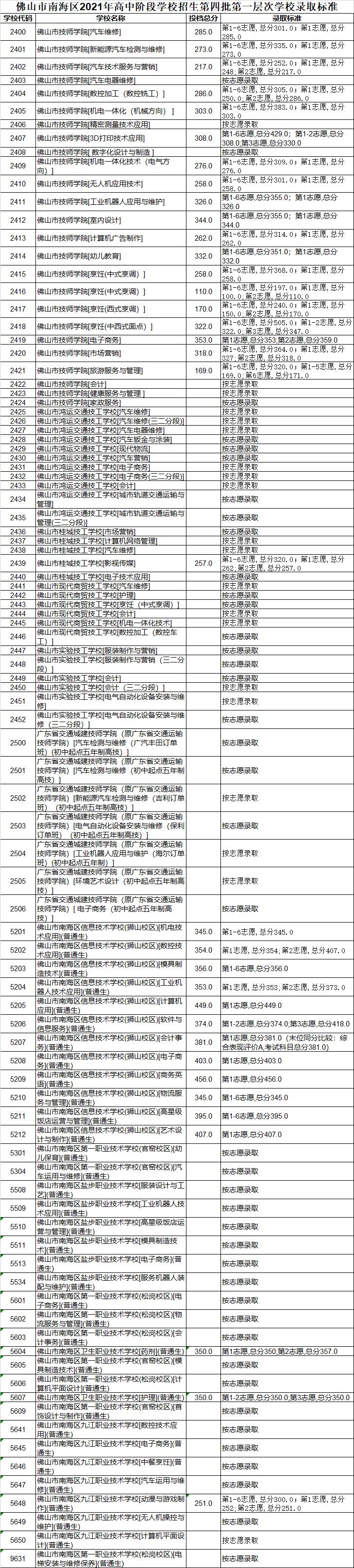 根据《佛山市2021年高中阶段学校招生考试工作意见》的规定,现划定南海区2021年高中阶段学校招生第四批招生学校各层次录取标准,并予以公布。