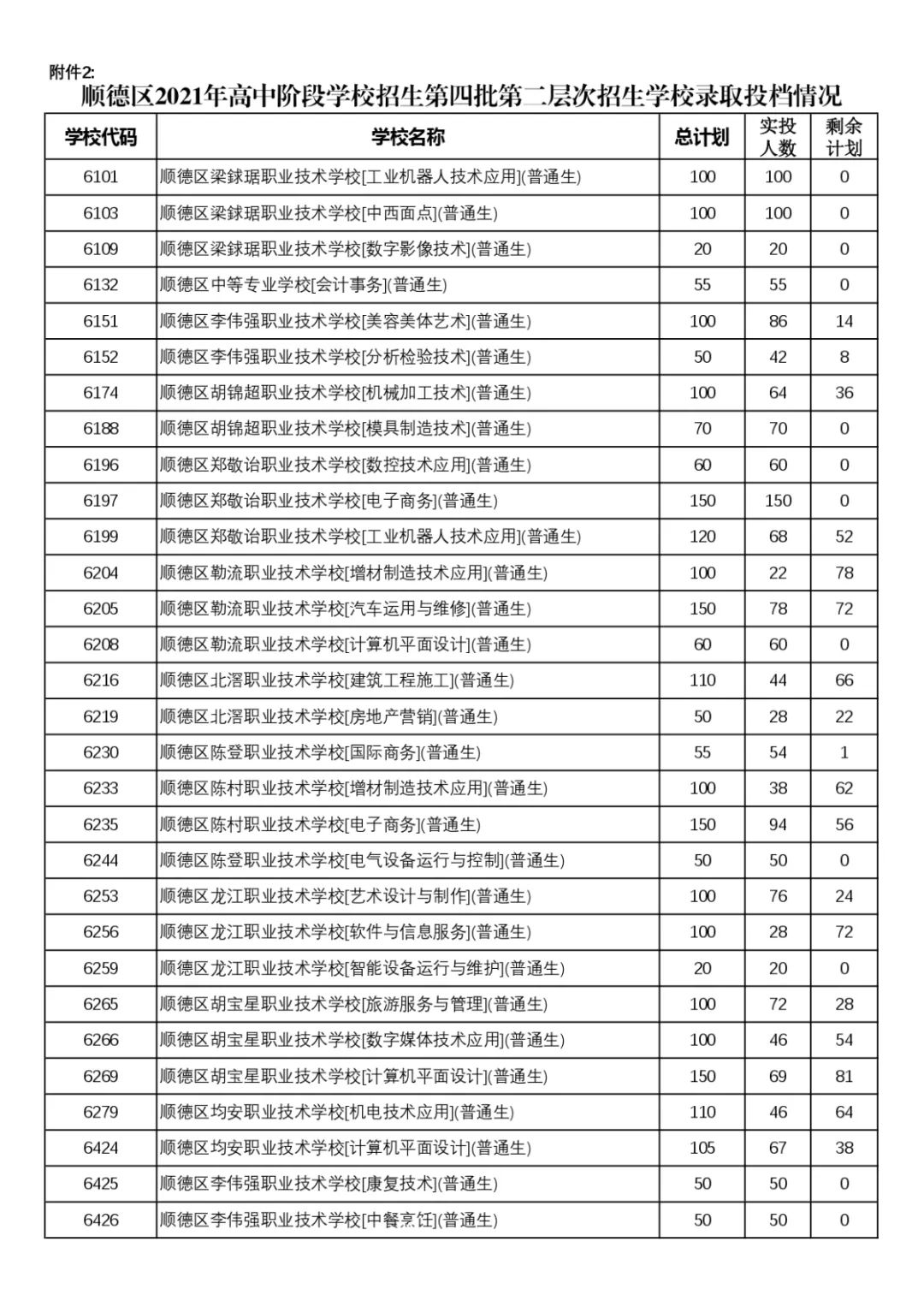 根据市的统一要求,顺德区2021年高中阶段学校招生第四批次录取采用佛山市中考录取系统进行划线投档,现将各层次学校的录取投档情况公布如下: