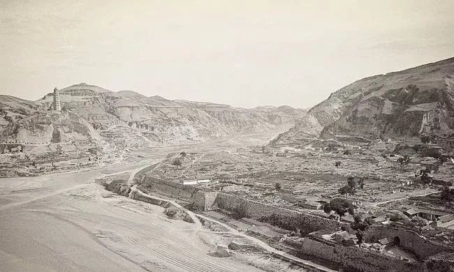 1937年延安,哈里森·福尔曼 / 摄延安的景色,与那里的人们一样,也处处令人兴奋、激动。这里有高大的城墙、潺潺的河流、庄严的佛塔、热闹的街道,经常可见到放声高歌、列队而过的红军队伍。