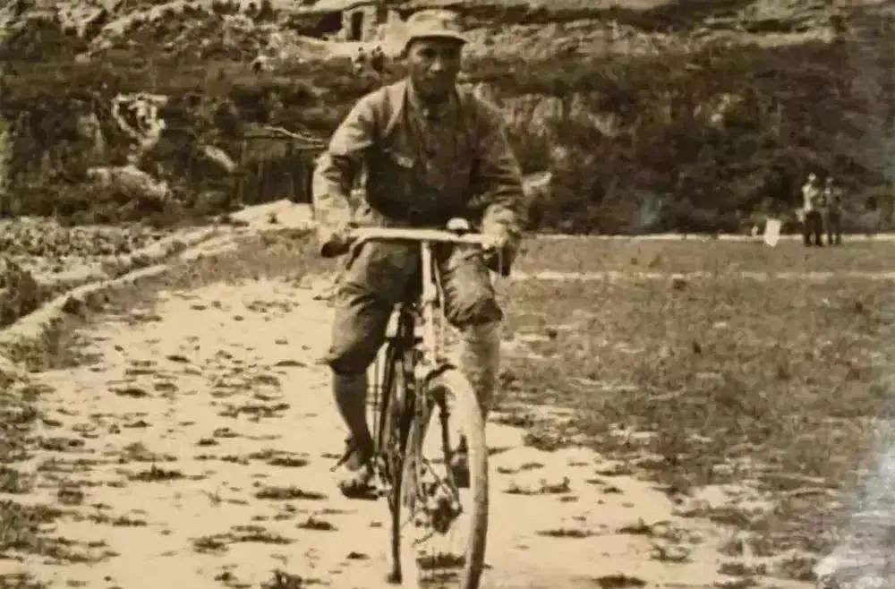 1938年,摄影师田野拍下朱德骑自行车画面朱德年轻时曾在欧洲留学数年,主要是在德国居住。但他好像丝毫没受到欧风的熏染。我们为他所拍摄的照片清楚地显示出,他的面孔,是中国革命运动中一张地地道道的农民的脸庞。他的言谈话语通常也是简明扼要、直截了当、清清楚楚的。这对做笔记的人来说,实在是个福气。
